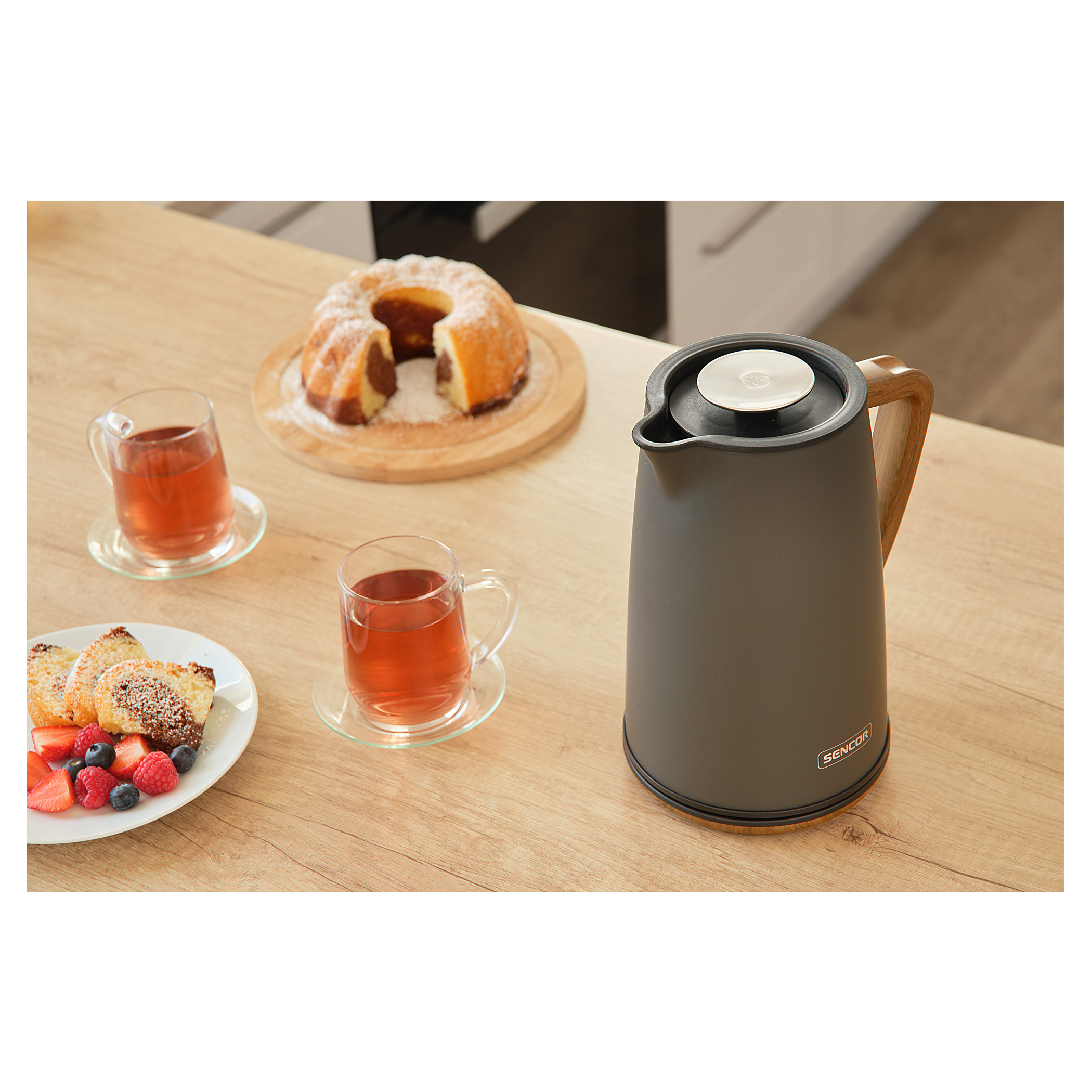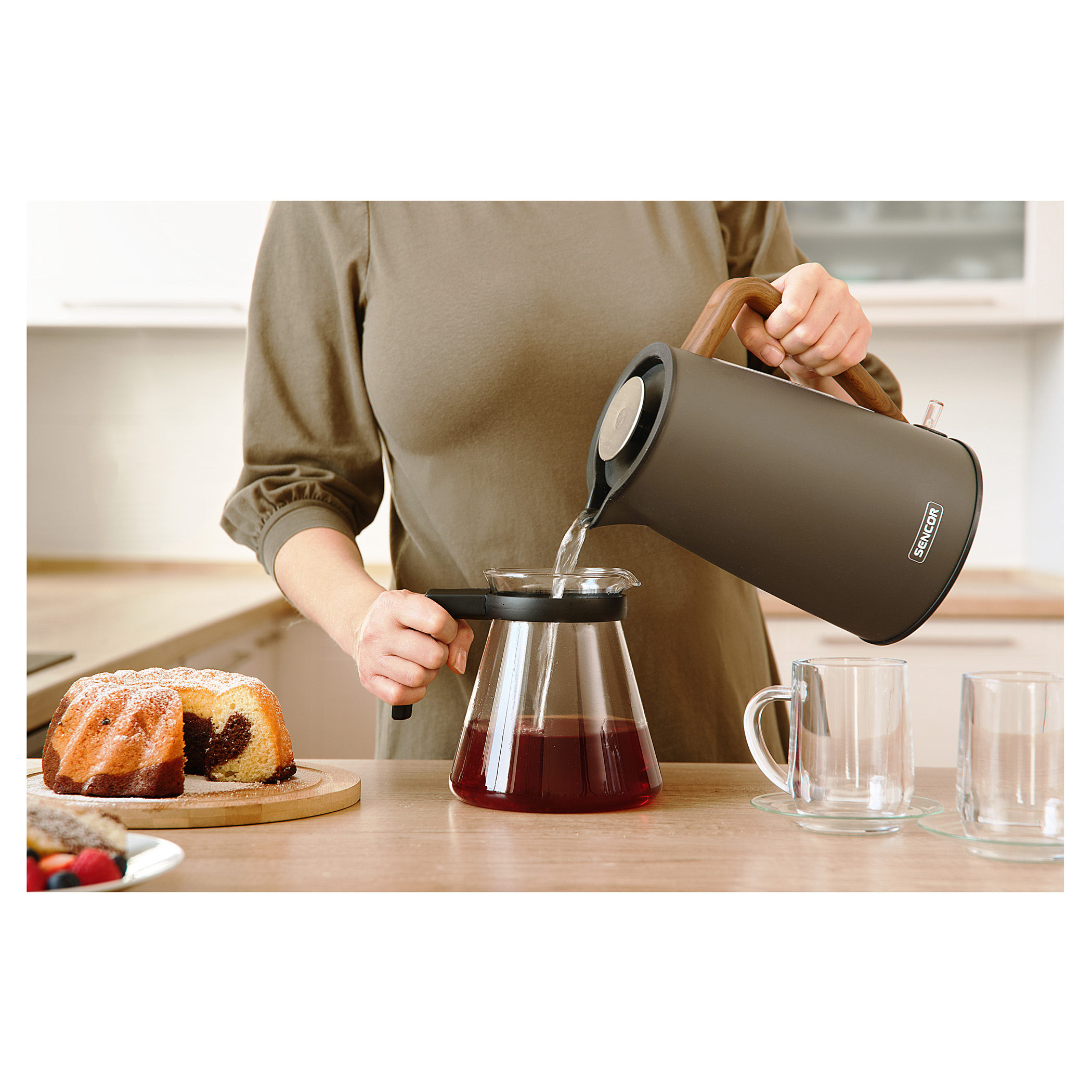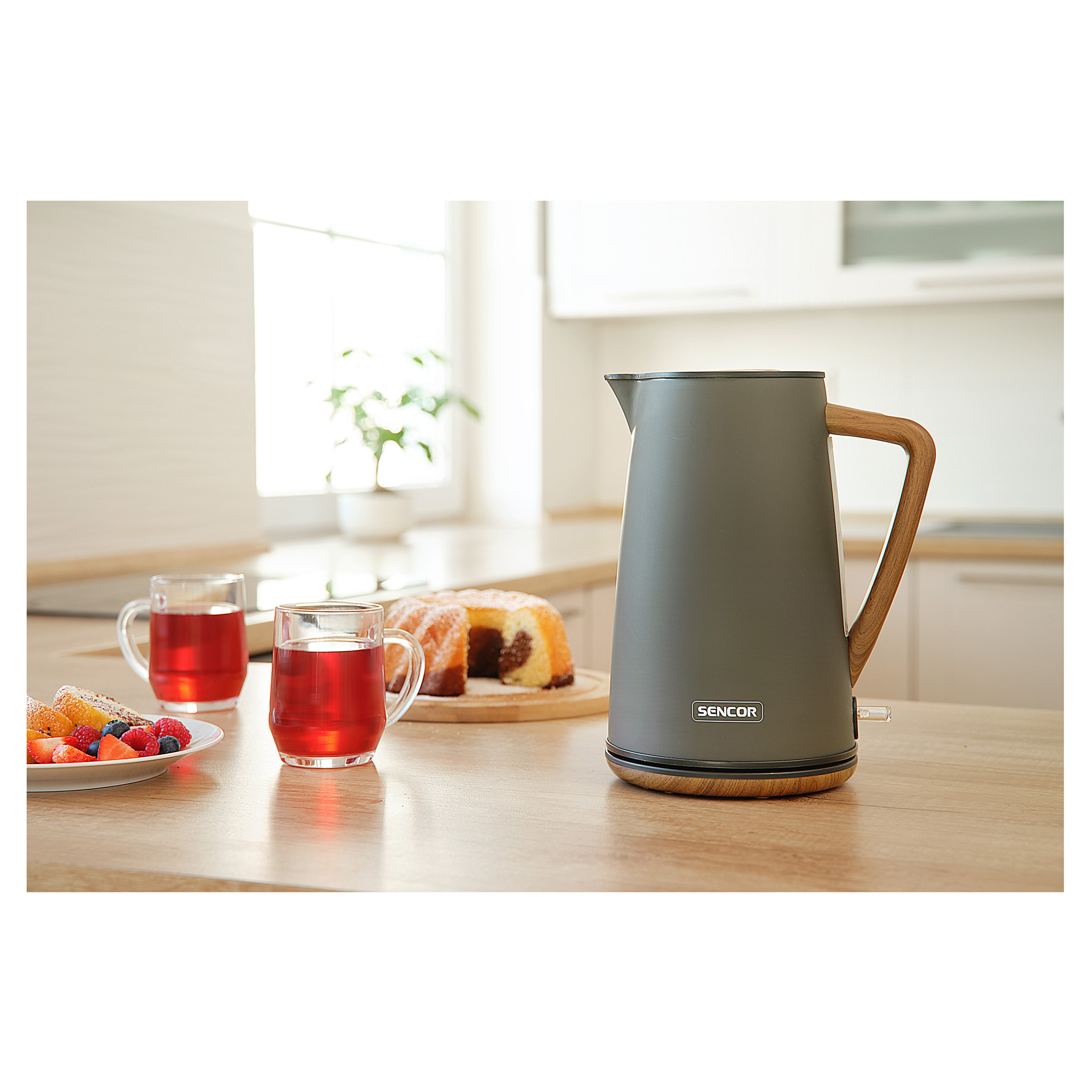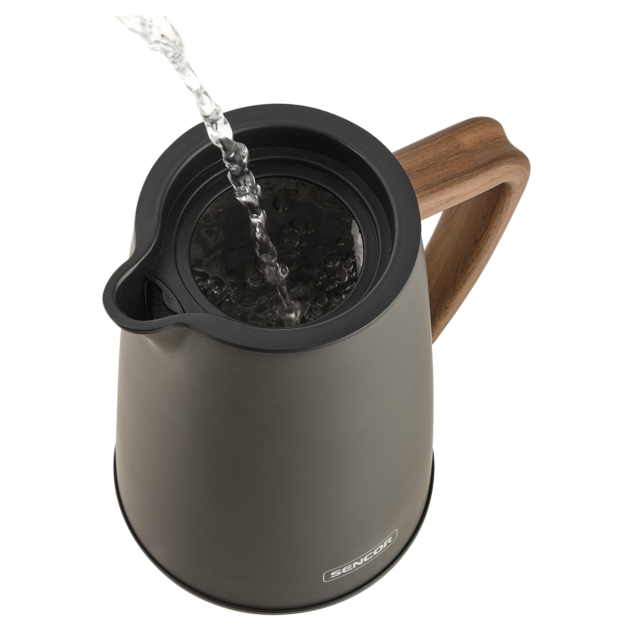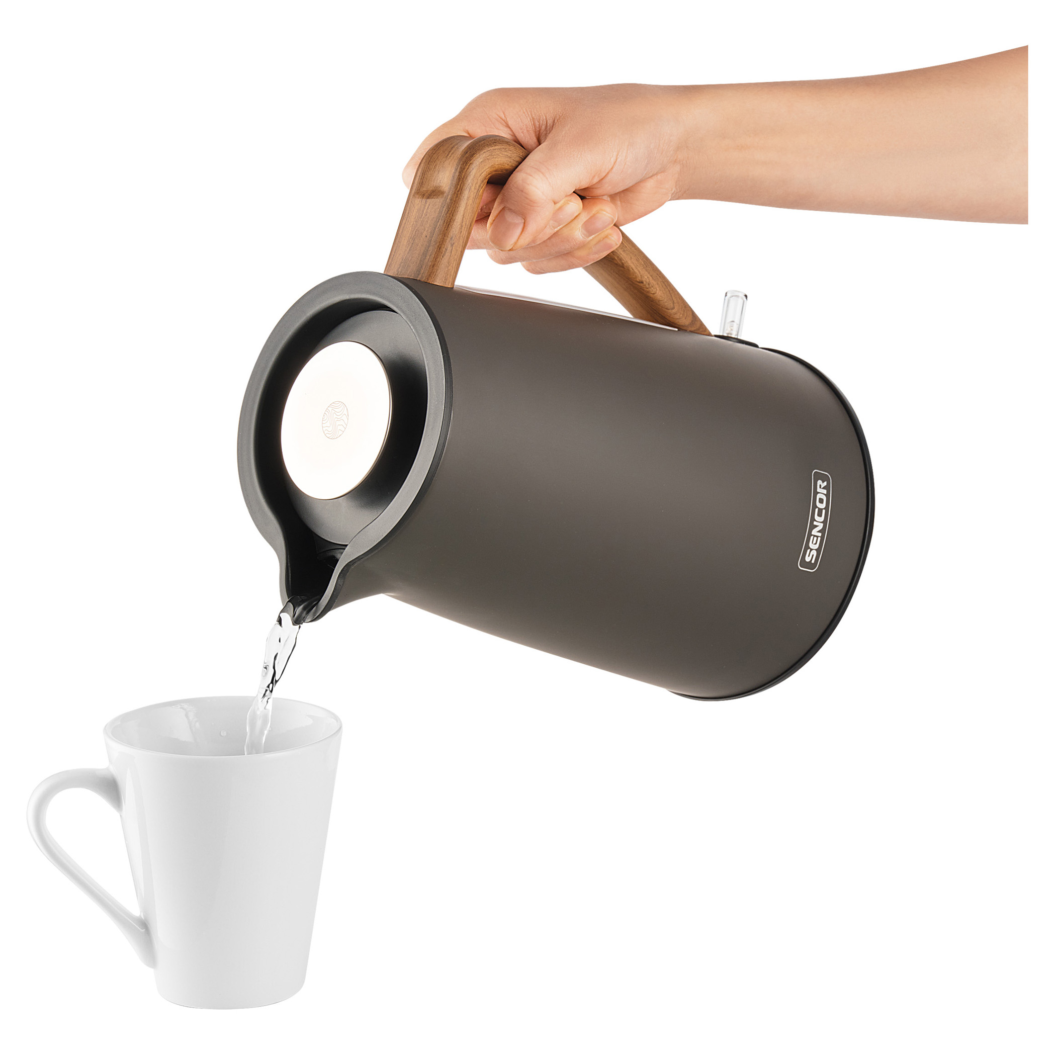 کتری برقی سنکور مدل SENOCR SWK 2727MB با طراحی ظاهری مدرن و ساده، جلوهای شیک و هماهنگ با دکور هر آشپزخانهای دارد. بدنهی استوانهای آن با پوشش مات و خطوط نرم، ظاهری جذاب و چشمنواز ایجاد کرده است.