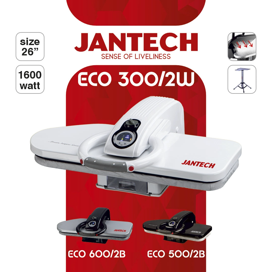 اتو پرس جانتک مدل ECO300 با شاسی بخار و نمایشگر دیجیتال، پیشرفتهترین امکانات را در اختیار کاربران قرار میدهد. این دستگاه با رنگ بدنه نقرهای و دسته و پایه مشکی، ظاهری شیکترین و مدرنترین دارد که به دکوراسیون منزل شما جلوهای خاص میبخشد. مدلهای ECO500 و ECO600 نیز دارای مشخصات فنی یکسانی با مدل ECO300 هستند و تنها تفاوت آنها در رنگ دستگاه است.