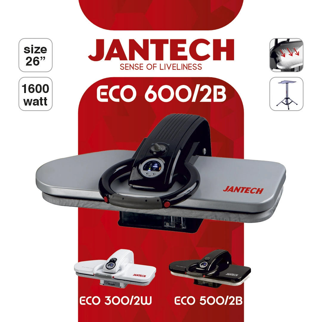 اتو پرس جانتک مدل ECO600با شاسی بخار و نمایشگر دیجیتال، پیشرفتهترین امکانات را در اختیار کاربران قرار میدهد. این دستگاه با رنگ بدنه نقرهای و دسته و پایه مشکی، ظاهری شیکترین و مدرنترین دارد که به دکوراسیون منزل شما جلوهای خاص میبخشد. مدلهای ECO500 و ECO600 نیز دارای مشخصات فنی یکسانی با مدل ECO300 هستند و تنها تفاوت آنها در رنگ دستگاه است.