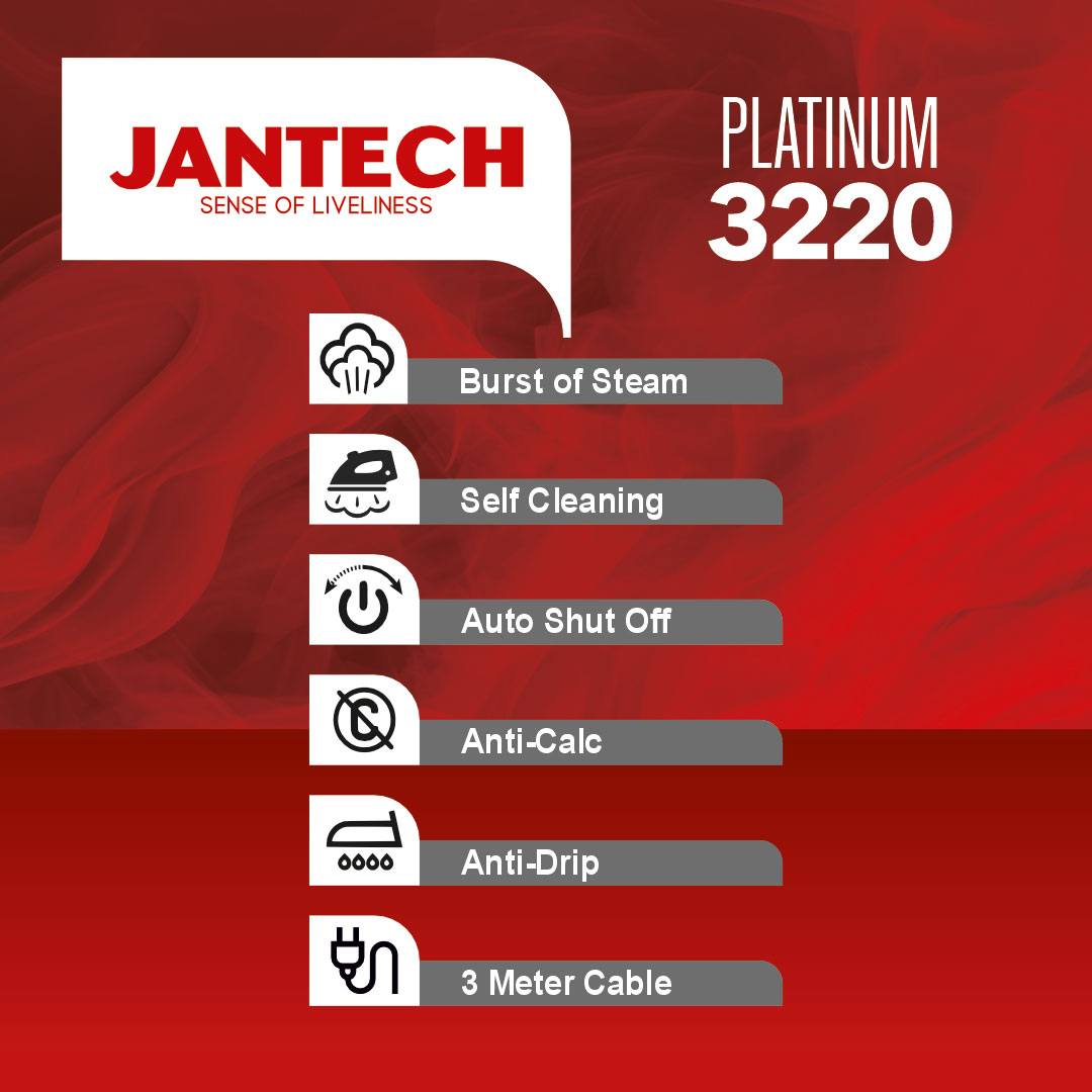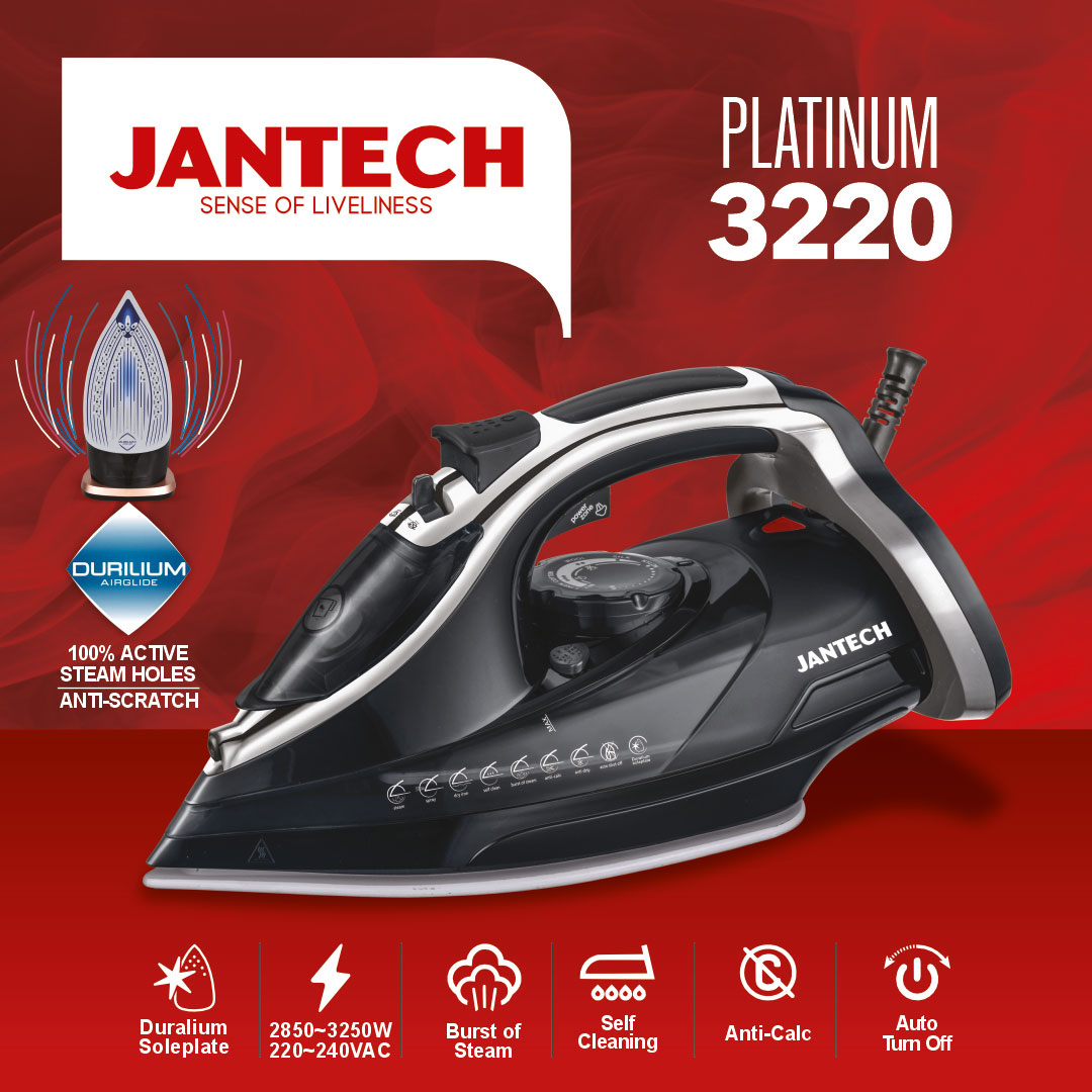 مخزن آب با ظرفیت 350 میلیلیتر و کابل 3 متری این امکان را فراهم میکند که بدون نیاز به جابجایی مکرر، بهراحتی اتوکشی کنید. همچنین، قابلیت اتوکشی خشک و آبپاش در این اتو، آن را به یک انتخاب ایدهآل برای هر نوع پارچه تبدیل کرده است. اتو بخار پروگلاید 3220 با گارانتی 24 ماهه، تجربهای لذتبخش و مطمئن از اتوکشی حرفهای را برای شما به ارمغان میآورد.اتو بخار لاکچری پروگلاید جانتک مدل 3220با قدرت 3250 وات و کفههای DURILIUM SOLEPLATE، تجربهای حرفهای از اتوکشی را ارائه میدهد. این دستگاه با بخار انفجاری 260 گرم در دقیقه، بخاردهی پیوسته 90 گرم در دقیقه و قابلیت تنظیم دما از 50 تا 220 درجه سانتیگراد، مناسب انواع پارچههاست. مجهز به سیستمهای تمیزکننده خودکار، ضد رسوب، ضد چکه و قطع کن خودکار، ایمنی و کارایی بالایی دارد. با مخزن آب 350 میلیلیتر و کابل 3 متری، استفاده از آن راحت و کارآمد است.