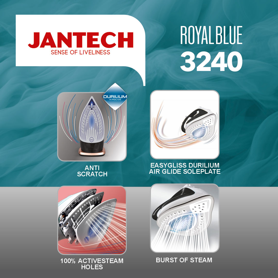 مخزن آب با ظرفیت 350 میلیلیتر و کابل 3 متری این امکان را فراهم میکند که بدون نیاز به جابجایی مکرر، بهراحتی اتوکشی کنید. همچنین، قابلیت اتوکشی خشک و آبپاش در این اتو، آن را به یک انتخاب ایدهآل برای هر نوع پارچه تبدیل کرده است. اتو بخار پروگلاید 3240 با گارانتی 24 ماهه، تجربهای لذتبخش و مطمئن از اتوکشی حرفهای را برای شما به ارمغان میآورد.اتو بخار لاکچری پروگلاید جانتک مدل 3240با قدرت 3250 وات و کفههای DURILIUM SOLEPLATE، تجربهای حرفهای از اتوکشی را ارائه میدهد. این دستگاه با بخار انفجاری 260 گرم در دقیقه، بخاردهی پیوسته 90 گرم در دقیقه و قابلیت تنظیم دما از 50 تا 220 درجه سانتیگراد، مناسب انواع پارچههاست. مجهز به سیستمهای تمیزکننده خودکار، ضد رسوب، ضد چکه و قطع کن خودکار، ایمنی و کارایی بالایی دارد. با مخزن آب 350 میلیلیتر و کابل 3 متری، استفاده از آن راحت و کارآمد است.