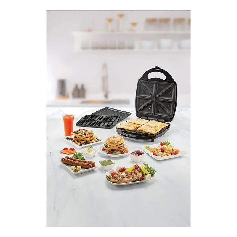 توان مصرفی ۱۴۰۰ وات، دارای صفحات ساندویچ ساز، گریل و وافل ساز، پوشش صفحات از جنس تفلون نچسب و با کیفیت بالا، قابلیت استفاده بصورت حالت باز ۱۸۰ درجه، صفحات جداشو و قابل شستشو، قابلیت آماده ساز هر بار ۴ عدد نان تست یا ۸ تکه مثلثی، قابلیت گریل کردن مرغ، ماهی، گوشت و سبزیجات، قابلیت آماده سازی چهار عدد وافل در هر مرتبه استفاده