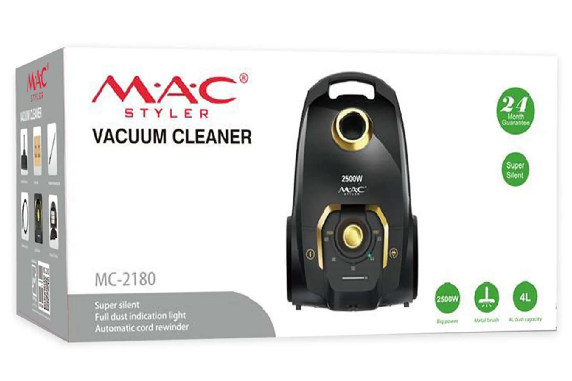 تکنولوژی پیشرفته، مواد عالی، خرید آسان تمایز مک استایلر در محصولات برقی،نظافت منزل یکی از اصلی ترین دغدغه های خانم های خانه دار می باشد و همواره به دنبال وسایل و ابزاری هستند که این امر را برای آن ها ساده تر کرده و در عین حال منزلی تمیز تر از همیشه داشته باشند. جاروبرقی مک استایلر مدل MAC-2180 دارای توان 2500 وات مجهز به یک موتور قدرتمند است.جارو دارای فیلتر هپا با فن آوری ضد حساسیت و ضد آلرژی و همچنین میکرو فیلتر خروجی است که امکان تمیز کردن محیط را بدون کوچک ترین گرد و خاک فراهم می کند.لوله تلسکوپی جاروبرقی قابلیت تنظیم ارتفاع را دارد. برای این دستگاه دو عدد کیسه یک بار مصرف برای جمع آوری گرد و خاک تعبیه شده و نشانگر روی بدنه جاروبرقی در صورت پر شدن کیسه به شما جهت تخلیه آن اطلاع می دهد.این دستگاه دارای 3 عدد سری می باشد. شخصات فنی محصولیک سری پارویی اصلی جهت تمیز کردن سطوح صاف و فرش. یک سری مخصوص پرده ها و یک سری مخصوص گوشه است. یک کلید بر روی بدنه جهت تنظیم قدرت مکش دستگاه تعبیه شده است.دو کلید تعبیه شده بر روی جارو برقی برای جمع آوری سیم و خاموش روشن کردن دستگاه می باشد.برند مک استایلر یک برند حرفه ای لوازم برقی محبوب در بین مشتریان و طرفداران.برند مک استایلر فعالیت خود را از سال 2010 بهعنوان یک مارک تجاری حرفهای از لوازم آرایشی الکتریکی آغاز کرد.